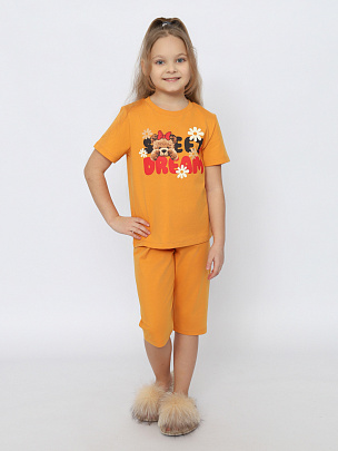 Комплект для девочки (платье модель "туника", бриджи) желтый
