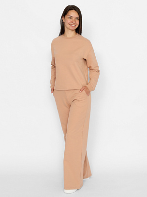 Стильный базовый спортивный костюм в стиле оверсайз (свободный крой) состоит из 2-х предметов: укороченный свитшот и брюки-палаццо с завышенной талией и расклешенные снизу. Костюм для женщин выполнен из футера без начеса. Элементы костюма можно носить как самостоятельные вещи. Укороченный свитшот можно комбинировать с джинсами, брюками, лосинами. Брюки-палаццо отлично смотрятся с футболкой, худи, топом или лонгсливом.